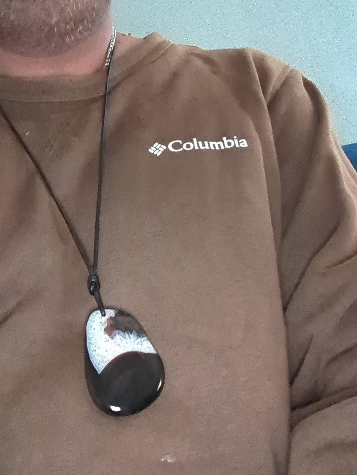 Simple rustic stone pendant made by me on a thick leather adjustable cord